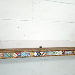 This handcrafted wall shelf blends artisan tilework with sustainable materials, creating a stunning focal point for any room.